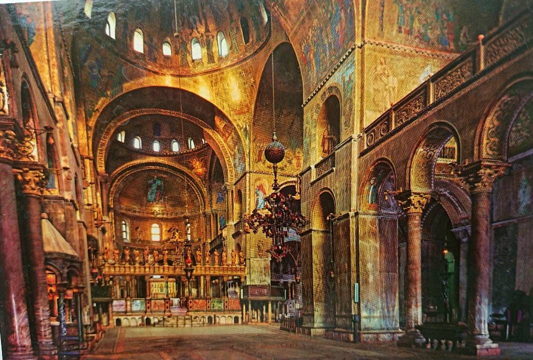 Sie ist eine der reichst ausgestatteten Kirche der wesentlichen Welt. Durch die frühe Weltbesegelung der Venezianer und auch durch den Handel kamen die Venezianer mit vielen prunkvollen Gegenständen in Berührung. Vieles als Beute, einiges wurde einfach gestohlen, wie die Gebeine des Heiligen Markus... Die Venezianer waren reiche deshalb musste der Dom ihren Reichtum wiederspiegeln.