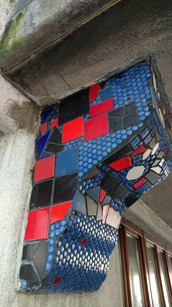 Im Hundertwasserhaus ist kein geradliniger Baukörper. Die Fassade ist sicher einer der berühmtesten von ganz Wien. Zwischen all den grauen Häusern hebt sie sich ordentlich ab. Alle Fenster stammen von verschiedenen Abbruchhäusern. Die Fassade ist bunt und teilweise mit Mosaiken dekoriert. Hundertwasser war überzeugt der Mensch hat 3 Häute : Seine eigene, die Bekleidung und die Fassade seines Hauses.