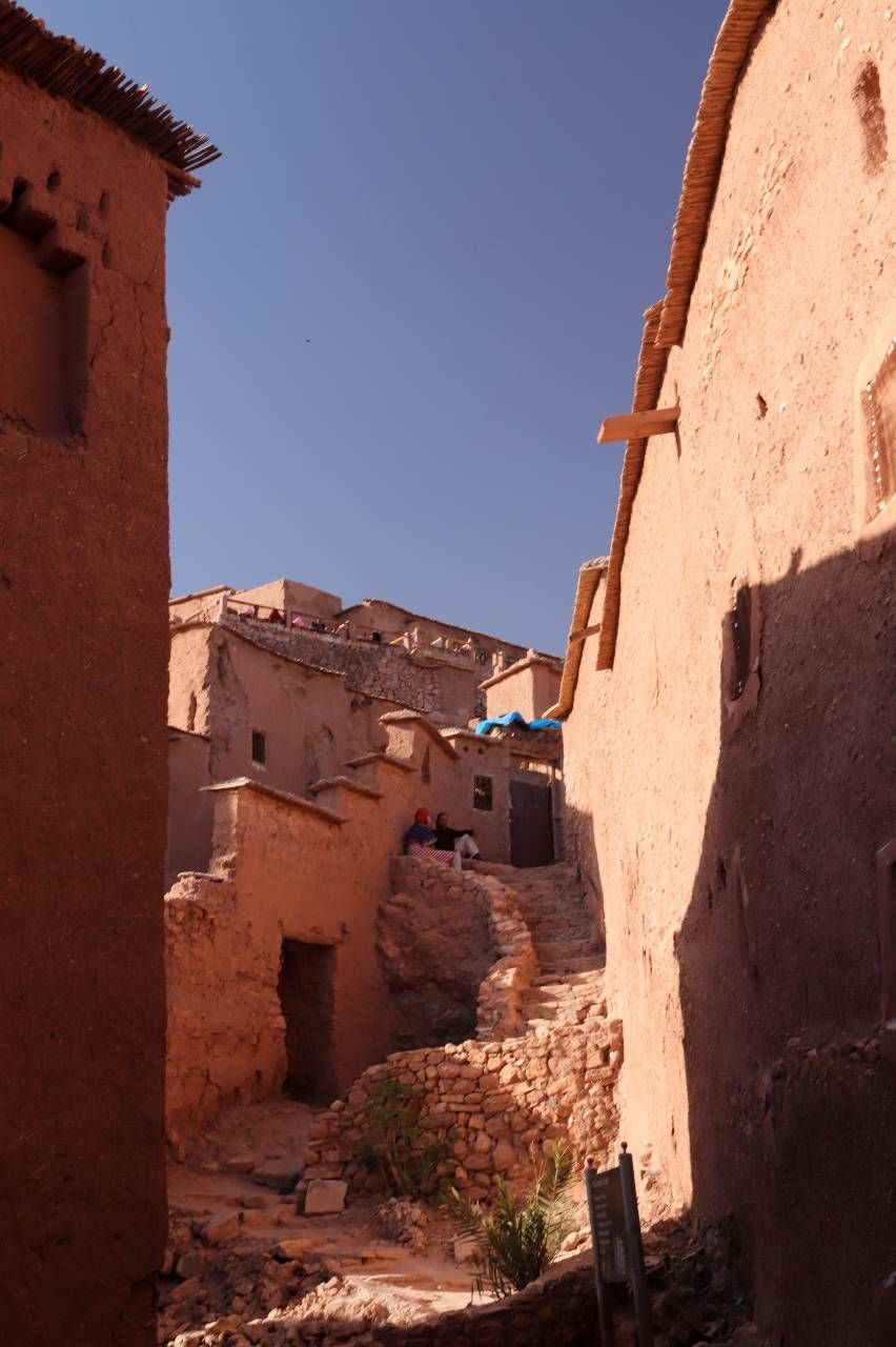 Am nächsten Tag ging es in die Stadt Quarzazate wo wir abends die Kasbah Ait Benhaddou besichtigen. Eine Kasbah ist eine aus Lehm erbaute befestigte Wohnburg. Ait Benhhaddou ist Unesco Welterbestätte. Einige Kasbahs wurden schon renoviert. Es dient auch als Filmkulisse. Games of Thrones, Gladiator (2000), Königreich der Himmel (2005), Prince of Persia (2009) und Die Mumie (1999) wurden hier gedreht. Während unsere Besuchs wurde gerade eine Filmkulisse aufgebaut. Da ist aber fotografieren verboten. Wird mit Wachpersonal kontrolliert.